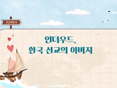 언더우드는 인도에 가서 복음을 전하고 싶은 마음을 품고 있었어요. 그래서 의학과 인도어를 공부하고 있었어요. 그러던 어느 날 언더우드는 서양에 전혀 알려지지 않았던 동아시아의 작은 나라 한국을 접하게 됐어요. 1,300만 명의 사람이 살고 있는 한국에 복음이 전해지지 않았다는 것을 알게 된 언더우드에게 하나님의 음성이 들려왔어요. “왜 너는 한국을 위해서 그 땅으로 가지 않느냐?”
